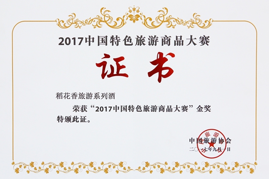 9月1日,在中國特色旅遊商品博覽會期間舉行的2017中國特色旅遊商品大賽中,由稻花香集團旗下稻花香酒業公司和宜昌龍泉旅遊公司聯合選送的稻花香係列白酒斬獲“中國特色旅遊商品大賽金獎”。