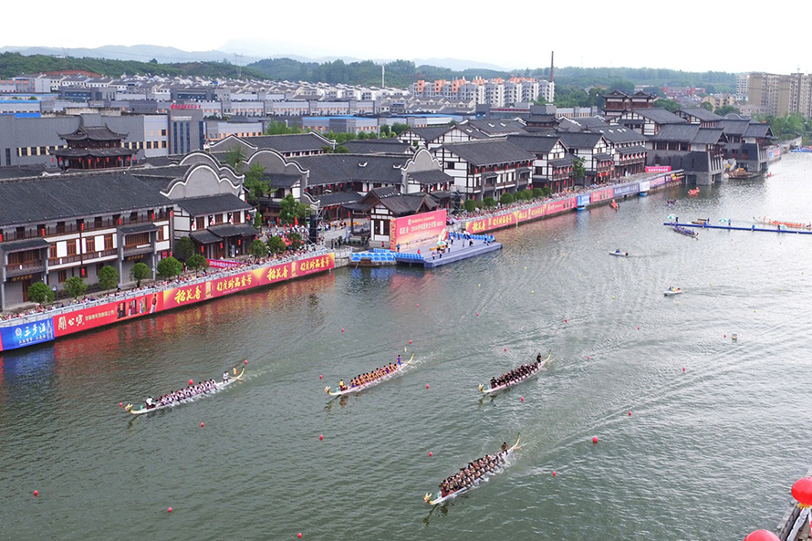 6月1日上午,稻花香•2016中國龍舟公開賽在龍泉鋪古鋪水上樂園正式鳴鑼開賽,22支參賽隊伍上演“遊龍戲水、你爭我奪”的水上大戲,為近3萬名現場觀眾送上今年宜昌的第一道端午文化大餐。