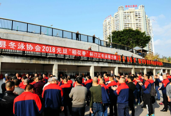 2017年12月30日,在福建上杭縣美麗的汀江南岸,隨著裁判的一聲令下,冬泳健兒們魚貫入水,上杭縣冬泳協會2018“稻花香”杯冬泳接力賽激情開賽。經過緊張刺激的角逐,最終決出一等獎1組,二等獎2組,三等獎3組,獎品分別為稻花香金珍一號、二號、三號產品。