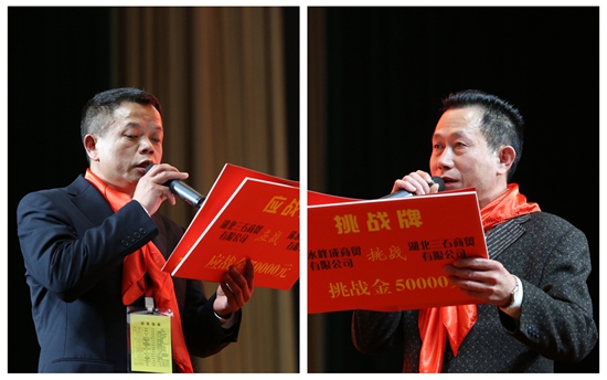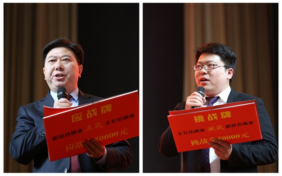 集團總經理曾洋下達2018年生產經營任務,並與集團各成員企業負責人簽訂2018年任務合同書;稻花香酒業、關公坊酒業、三麥酒業三家酒業公司營銷公司總經理分別與各分公司經理簽訂2018年任務合同書。圍繞2018年任務目標,曾洋帶領集團成員企業負責人向蔡開雲誓師宣言;集團成員企業、分公司經理、經銷商代表現場進行結對挑應戰,充分展現稻花香人決戰決勝年度目標,敢打硬仗的鐵軍精神。
