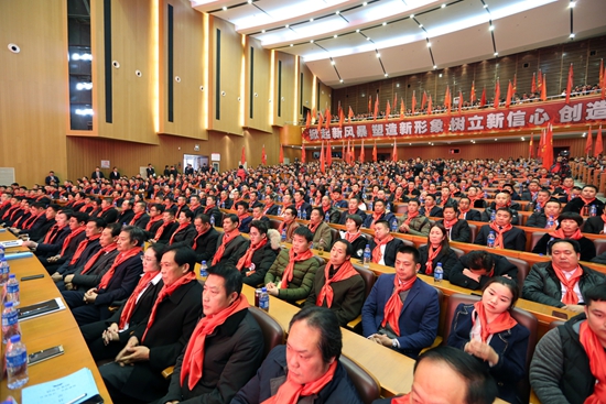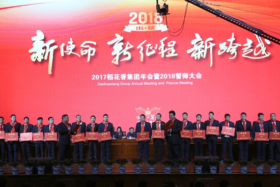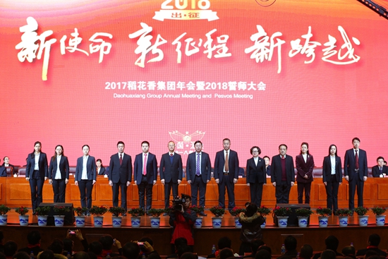 1月10日下午,酒鎮龍泉,千商雲集。2017稻花香集團年會暨2018誓師大會在稻花香大禮堂隆重舉行,稻花香集團董事長蔡開雲率新一屆領導班子成員亮相,稻花香集團黨委書記、終身名譽董事長蔡宏柱發布動員令,來自全國各地的2000餘名稻花香經銷商、營銷人員莊嚴誓師:眾誌成城鑄就豐功偉業,牢記使命開啟逐夢新篇,稻花香2018年劍指560億!