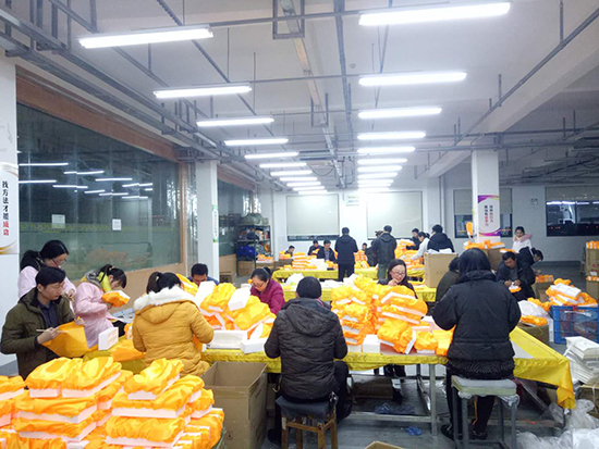 當前正值綜藝公司生產旺季,公司年前需交貨的手工盒待產數量已達370萬wan盒he,給gei生sheng產chan工gong作zuo帶dai來lai較jiao大da壓ya力li。為wei確que保bao旺wang季ji生sheng產chan順shun利li進jin行xing,綜zong藝yi公gong司si上shang下xia一yi心xin,全quan體ti行xing管guan人ren員yuan利li用yong休xiu息xi時shi間jian紛fen紛fen到dao車che間jian協xie助zhu產chan品pin生sheng產chan,大da家jia分fen工gong明ming確que、緊密配合,整個生產過程中無一人喊苦叫累,充分展現了綜藝公司團結一致、不畏艱難的精神麵貌和不怕吃苦、樂於奉獻的職責使命。