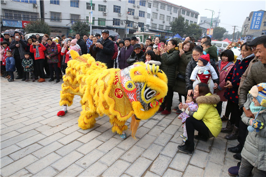 10點整,喜慶的鑼鼓響起來,一條紅色的“飛龍”騰空而起,年輕的觀眾拿出手機拍起了視頻,開起了網絡直播,老年人們個個看得目不轉睛,跟著節奏搖頭晃腦打著節拍。“多少年沒見過舞龍了,我們那個年代,過年必須要‘玩龍燈’才熱鬧,這個龍舞得真不錯,再年輕10歲,我也想上去舞兩把!”有舞龍怎麼能少了舞獅,兩頭活力四射的獅子“噌”的(de)一(yi)聲(sheng)就(jiu)從(cong)台(tai)上(shang)蹦(beng)到(dao)了(le)台(tai)下(xia),被(bei)人(ren)群(qun)團(tuan)團(tuan)圍(wei)住(zhu),兩(liang)頭(tou)獅(shi)子(zi)惟(wei)妙(miao)惟(wei)肖(xiao),引(yin)得(de)觀(guan)眾(zhong)拍(pai)手(shou)叫(jiao)好(hao),一(yi)位(wei)小(xiao)朋(peng)友(you)以(yi)為(wei)是(shi)真(zhen)的(de)獅(shi)子(zi)來(lai)了(le),嚇(xia)得(de)直(zhi)往(wang)媽(ma)媽(ma)懷(huai)裏(li)紮(zha)。