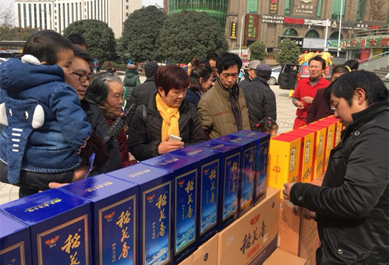 據稻花香酒業宜昌市場相關負責人介紹,春節前夕,稻花香酒在小溪塔市場銷售十分火爆,銷售量是平常的10倍以上,眾多消費者已將活力型酒作為年貨白酒的首選。(肖萍 袁林)