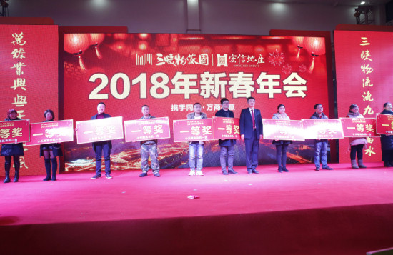 【概要描述】2月8日,宜昌三峽物流園、宜昌宏信房地產公司聯合召開2017年度工作總結表彰大會,並在三峽物流園萬臻食府隆重舉行“攜手同行•萬商共贏”2018新春年會。