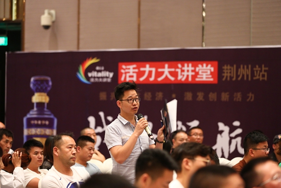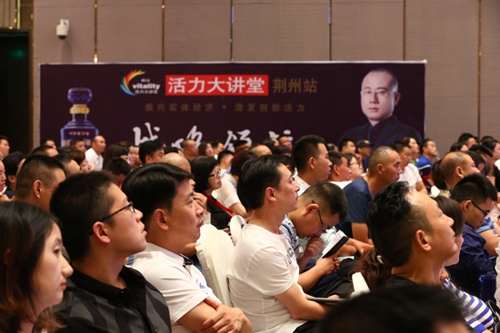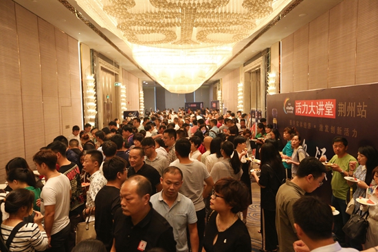 荊州萬達嘉華酒店三樓宴會廳,客商雲集,活力四射,700餘名商企精英齊聚稻花香活力大講堂活動現場,啟迪智慧,品鑒佳釀。