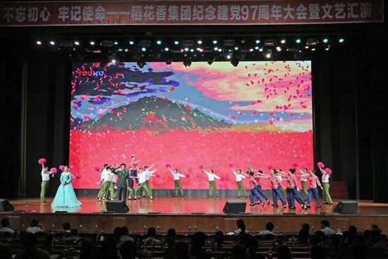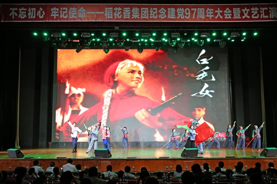 6月29日,稻花香大禮堂黨旗飄揚、紅歌嘹亮,以“不忘初心 牢記使命”為主題的稻花香集團紀念建黨97周年大會暨文藝彙演在此隆重舉行。集團全體黨員、預備黨員、入黨積極分子及各成員企業班組長以上幹部共計千餘人歡聚一堂,以表彰先進、文藝彙演等多種形式重溫黨史、歌頌黨恩,凝聚發展合力,激勵全體稻花香人在實現千億稻花香夢的征程中奮勇前行。