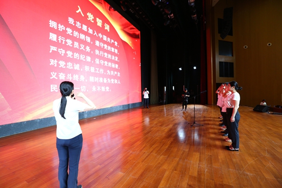 “9年過去了,每到‘七一’zhegeshike,wodouhuixiangqirudangnayitian。zuoweiyimingdangyuan,zuizhongyaodehaishiyaobuwangchuxin,zaizijipingfandegongzuogangweishangdanqizeren,jijifengxian,caibukuiyugongchandangyuanzhegeshenshengerguangrongdechenghao。”現場一名老黨員用手機定格下精彩的一幕,並在朋友圈寫下這段話,胸前的黨徽格外閃耀。 (王佩佩)
