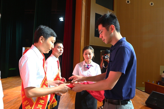 會上,劉月蓉宣讀黨員轉正、接收新黨員通知書,龍廣韜等9名預備黨員按期轉為中共正式黨員,覃南珊等7名預備黨員在鮮豔的黨旗下莊嚴宣誓,現場全體黨員重溫入黨誓詞。朱明海宣讀表彰文件,稻花香酒業公司黨支部、奧美公司黨支部2個“五好黨支部”,張麗等10名優秀共產黨員受到表彰。