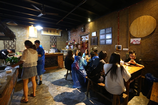 在歡樂城消耗了體力的媒體記者們循著味兒,就能找到古鎮內的特色商鋪,來一碗西施豆腐坊的招牌豆花,一瓶“叭一口”現打酸奶,再來一盒花生與麥芽糖。還不夠?他們又循著音樂來到“巷往”音樂酒吧,帥氣的調酒師、浪漫文藝的環境、舒緩的音樂,讓大家沉醉在這青磚黛瓦、酒色生香的龍泉鋪! (楊森)