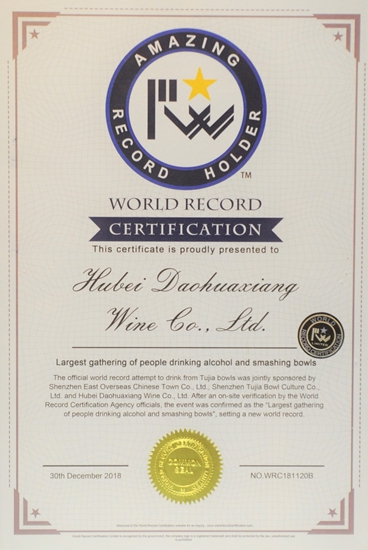 2018年12月30日,深圳東部華僑城海菲德小鎮人潮如織,熱鬧非凡,由稻花香酒業公司、東部華僑城、深圳土家碗文化公司等聯合發起的萬人同飲摔碗酒挑戰世界紀錄活動隆重舉行,以此獻禮改革開放40周年,迎接新一年的到來。經過世界紀錄認證官亞曆山大現場認證,該項挑戰活動創造世界紀錄,稻花香酒業公司喜獲世界紀錄證書。
