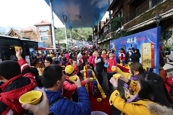 【概要描述】2018年12月30日,深圳東部華僑城海菲德小鎮人潮如織,熱鬧非凡,由稻花香酒業公司、東部華僑城、深圳土家碗文化公司等聯合發起的萬人同飲摔碗酒挑戰世界紀錄活動隆重舉行,以此獻禮改革開放40周年,迎接新一年的到來。經過世界紀錄認證官亞曆山大現場認證,該項挑戰活動創造世界紀錄,稻花香酒業公司喜獲世界紀錄證書。 活力型構成一道亮麗的藍色風景線 杯盞共盛世,活力迎新年。活動現場,隻見一張張條形