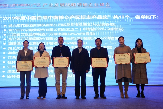 由稻花香酒業公司選送的“清樣”(52%vol兼香型),關公坊酒業公司選送的“關公傳旗20”(42%vol兼香型)獲評中南核心產區標誌產品獎,湖北國肽健康酒業公司選送的“獨具醬心”(52%vol醬香型)獲評中南核心產區風格特色獎。