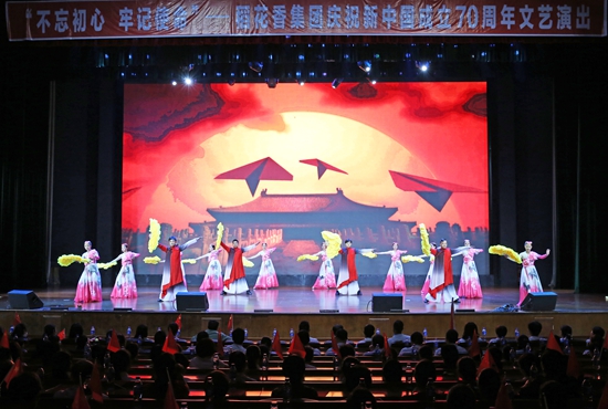 9月30日,“不忘初心、牢記使命”——稻花香集團慶祝新中國成立70zhounianwenyiyanchuzaidaohuaxiangdalitangjuxing,zhongwenguanghuilicheng,gongxiangzuguorongguang,nulizaixinshidaigaozhiliangfazhanzhengchengzhongxuxiexinpian,weishixianzhonghuaminzuweidafuxingdezhongguomenggongxiandaohuaxiangliliang。