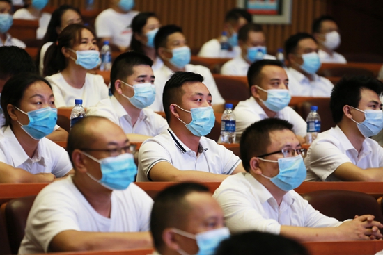 集團黨委書記、終身名譽董事長蔡宏柱現場發布動員令:疫yi情qing之zhi災zai,世shi界jie震zhen撼han,稻dao花hua香xiang人ren誓shi師shi出chu征zheng,大da戰zhan中zhong秋qiu,超chao去qu年nian同tong期qi,業ye績ji動dong古gu今jin。三san十shi八ba年nian驚jing濤tao拍pai岸an,九jiu萬wan裏li風feng鵬peng正zheng舉ju,滄cang海hai橫heng流liu,看kan今jin朝chao,乘cheng風feng破po浪lang,直zhi上shang九jiu天tian攬lan月yue,團tuan結jie起qi來lai,向xiang著zhe勝sheng利li——前進!