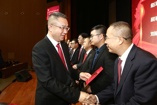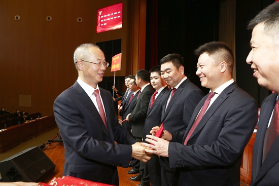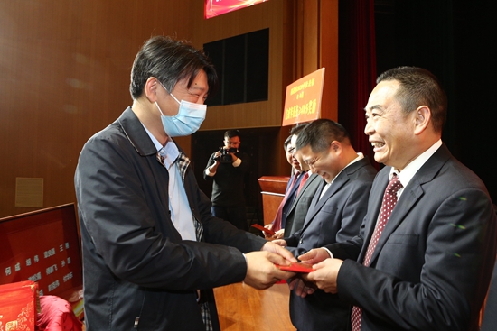 會議現場表彰了一批完成八至九月確保任務、全年回款任務比例的營銷團隊、大區經理、營銷副總、分公司經理、營銷人員。稻花香集團董事長、稻花香酒業公司董事長、總經理蔡開雲,集團副董事長謝永信、總經理曾洋、財務總監陳兵、副總經理劉月蓉為獲獎人員頒獎。武漢、十堰、豫北分公司經理分別上台發言,他們分享了積極麵對疫情挑戰,克難攻堅,完成任務的經驗做法,表示將保持任務於心、責任於肩、落實於行,全力以赴,開拓進取,再立新功。