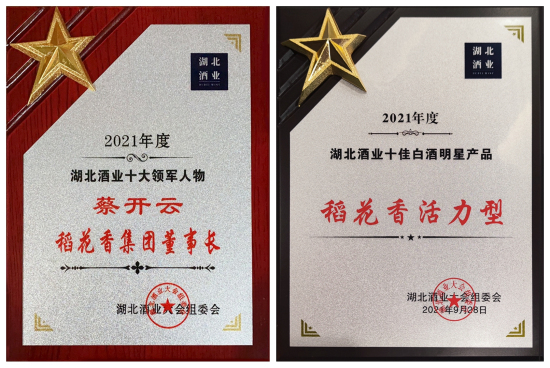 9月28日,“美美與共 楚酒之美”2021第五屆湖北酒業大會在武漢舉行,期間舉行了湖北酒業總評榜頒獎典禮,稻花香集團董事長、稻花香酒業公司董事長、總經理蔡開雲榮膺“湖北酒業十大領軍人物”,稻花香活力型被評為“湖北酒業十佳白酒明星產品”。