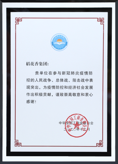 此前,全國工商聯發布通報,對疫情“阻擊戰”中做出突出貢獻的民營企業給予表揚,稻花香集團獲評“抗擊新冠肺炎疫情先進民營企業”。