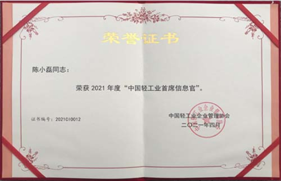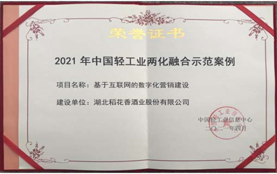 4月15日至16日,2021第十一屆中國輕工業信息化大會在北京舉行。稻花香酒業公司《基於互聯網的數字化營銷建設》榮獲“2021年中國輕工業兩化融合示範案例”,公司副總經理陳小磊榮獲“中國輕工業首席信息官”榮譽稱號。