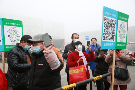市民掃碼測體溫後入場