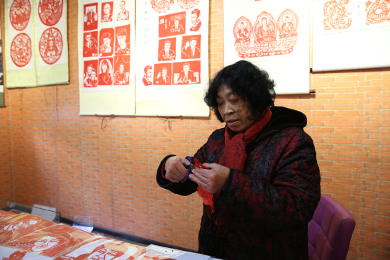 非遺傳承人胡文英正在進行剪紙創作