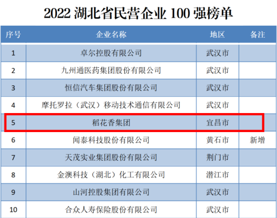 11月3日,湖北省政府新聞辦召開新聞發布會,發布2022湖北民營企業100強榜單、民營企業製造業100強榜單,稻花香集團連續11年入選民企百強,位列第五位;蟬聯民企製造業百強榜,位列第二位。